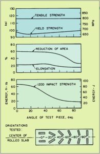 Many metal parts are made from rolled products like bars or plates. The rolling process changes the properties of the metal. The major advantage is that the strength is increased in the rolling direction or the longitudinal axis. Both forgings and fabrications have directional properties as a result of the rolling process.